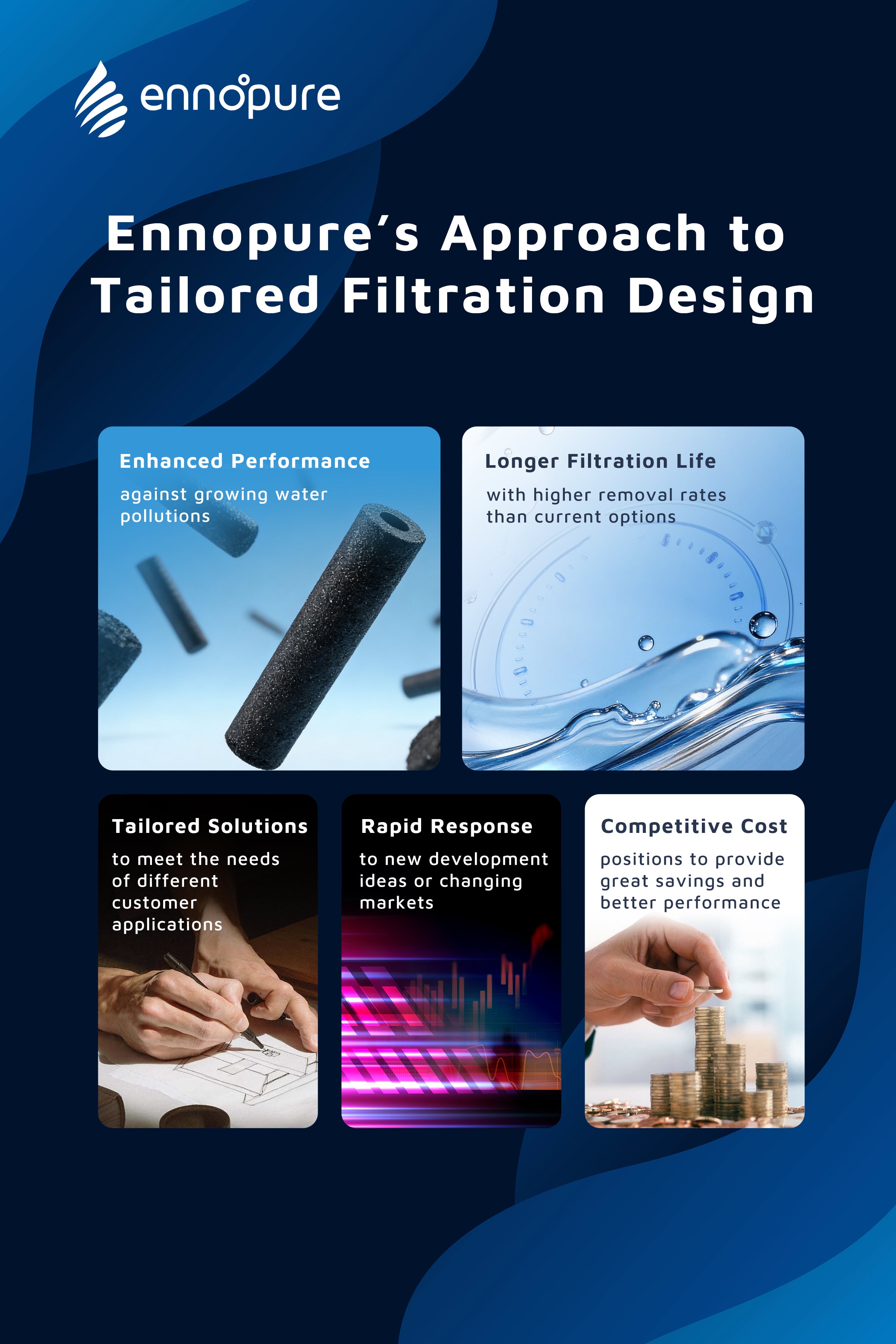 3 core four technologies: e+Shield, ePureflo, enfusion, achieving high performance and longer lifespan